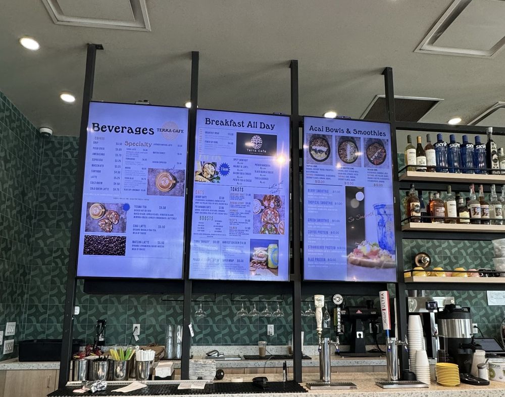 Terra Cafe offers amenities such as Pets Welcome, Accepts Contactless Payments, ensuring a comfortable and convenient experience for clients.